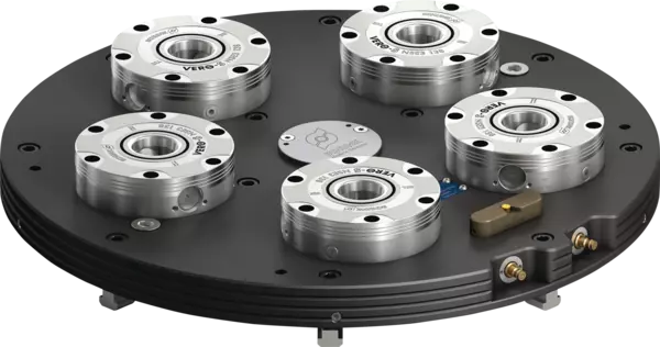 Clamping station, mounting screws, centering pins, adjustment pins, T-nuts, locking coupling, eye bolts, operating manual; without clamping pins